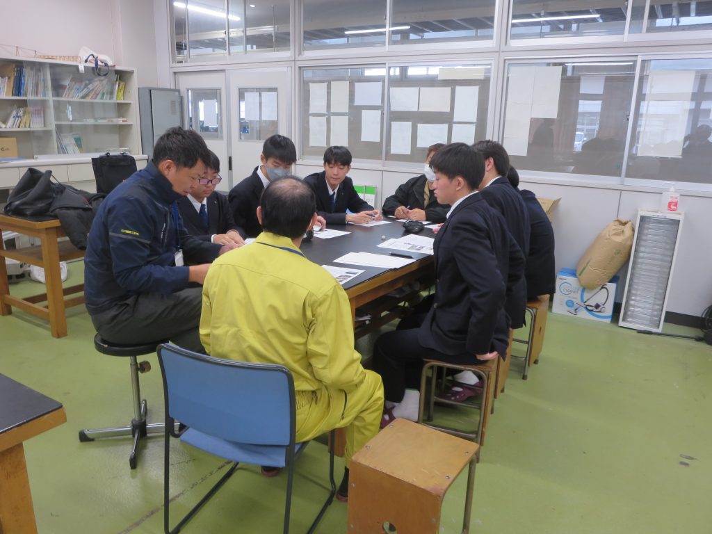 | 内容 : | 12月12日(金)、青年委員会未来の担い手創出セクション委員と金沢市立工業高等学校の土木科2年生との意見交換会が開催されました。 意見交換会は、今後の建設業界の担い手となる生徒に建設業界の現状を理解していただき、生徒が実際の仕事をどのように感じているのか、不安に思っているのか、会社に対してどのようなことを期待しているのか、率直に話し合うため、平成27年度から行っています。 橋本和宏青年委員長の挨拶に続き、7グループ(男子生徒5グループ、女子生徒2グループ)に分かれグループごとに意見交換を行いました。また、今年度は女性のアドバイザー4名の参加ををいただきました。 生徒からは、「仕事をするうえで必要な能力は」、「内勤と外勤で給料に違いがあるのか」、「週休2日制や有休休暇の取得などの勤務時間は」、「在学中に取得しておけばよい資格は」、「デジタル化やICTなど、建設業界の技術進歩について」等、例年以上に具体的な質問が多くあり、これらに対して丁寧に説明をしました。最後に、各テーブルの生徒の代表者が、感想の発表を行いました。 また、意見交換会に先立ち第8回校内測量コンテストの表彰式も行いました。 このコンテストは、建設業における若年層の担い手確保の一環として金沢市立工業高等学校土木科1年生を対象として、当協会の青年委員会未来の担い手確保・育成セクションが土木科の先生の協力のもと、測量の技術力の向上と就職した際の即戦力となることを目的として、平成30年度から実施をしております。 測量コンテストの結果、1位は水澗瞬、三輪大樹さんチーム、2位は井上芽、北村心さんチーム、3位は前田旺吉朗、松﨑晴さんチームに決まりました。入賞した各生徒には橋本青年委員長から表彰状と副賞が贈呈されました。 また、入賞した3チームは来年6月に開催される(一社)石川県建設業協会主催の測量コンテストに参加する予定となっています。 |